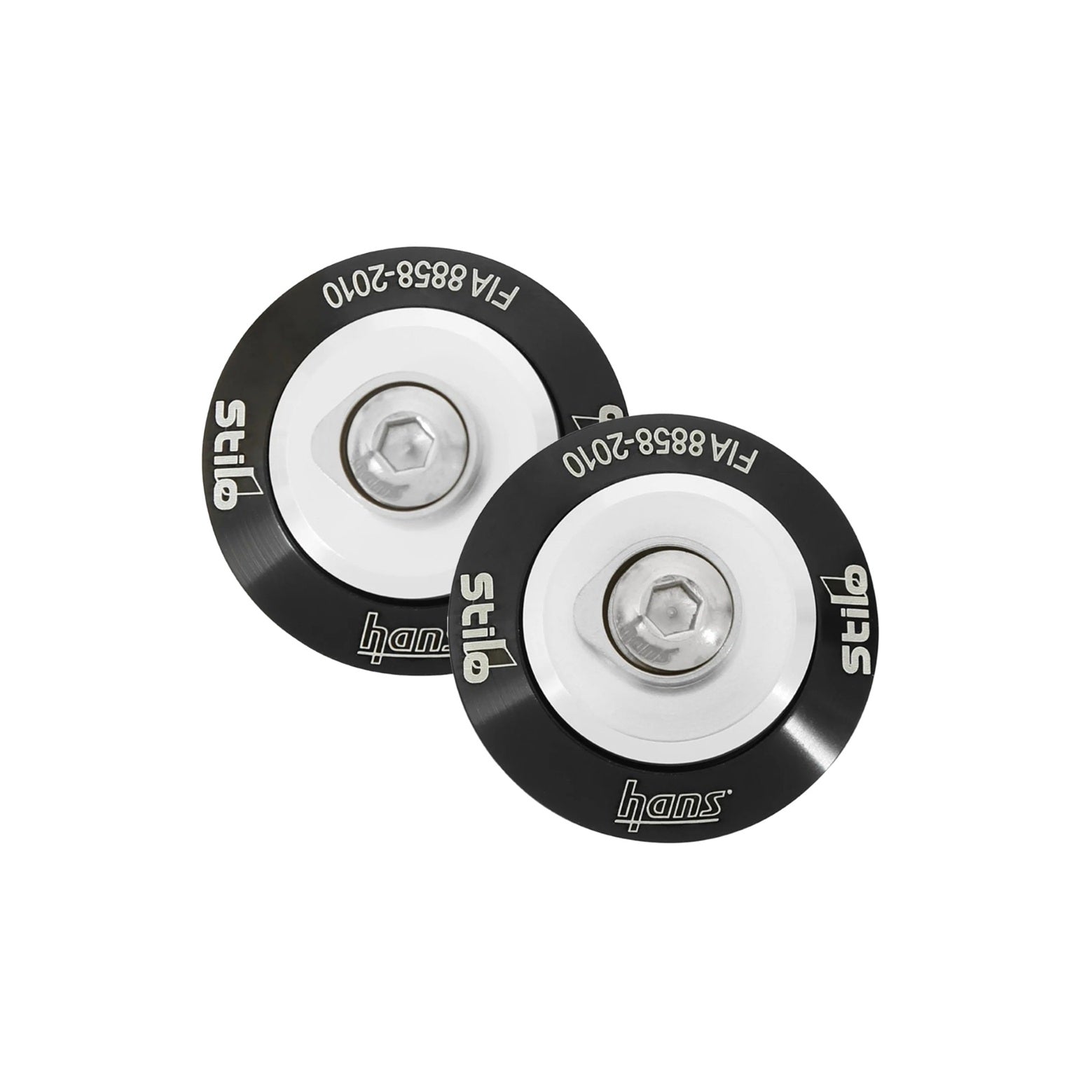 O kit de fixação da Stilo é uma peça de substituição direta ou adicional para instalar o protetor cervical Hans ou Simpson a um novo capacete. Vendido em pares e projetado para capacetes equipados com roscas M6 de fábrica.